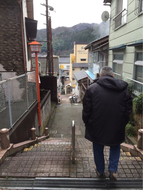 階段を下って行くと温泉街です