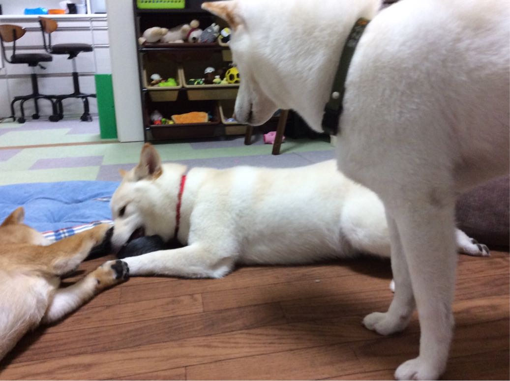 最後まで、栗蔵一人で寝そべって遊んでたワン♪