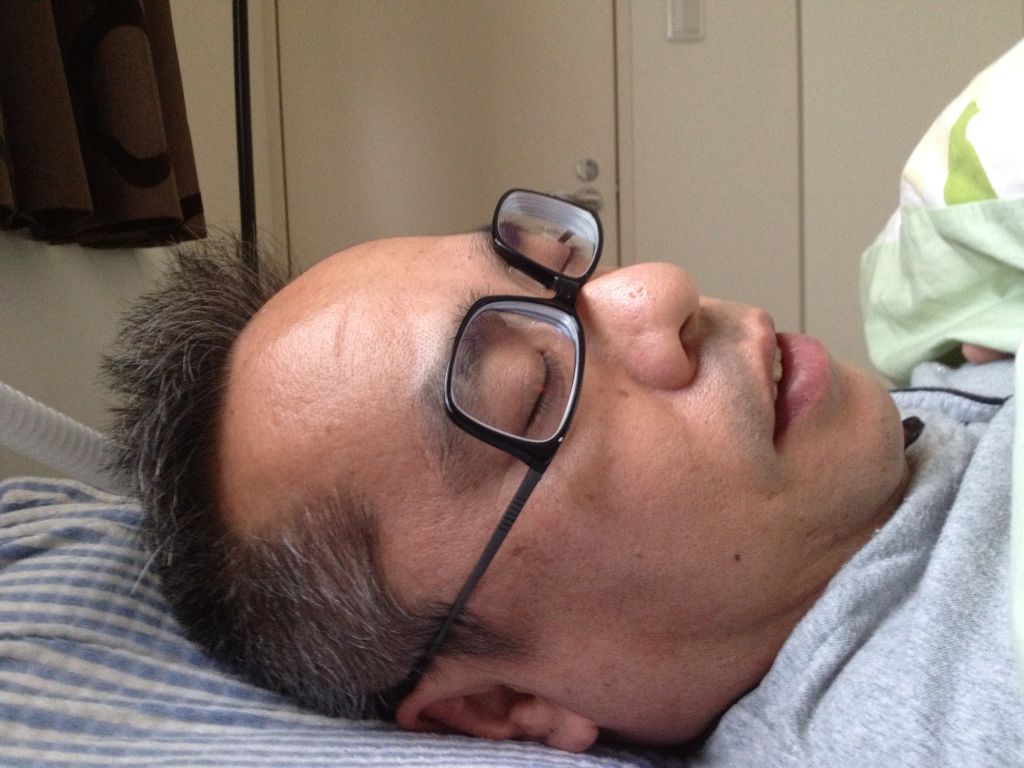 慌てて眼鏡をかけたのであんな風になったみたい、そんで、そのまま眠ってた(笑)