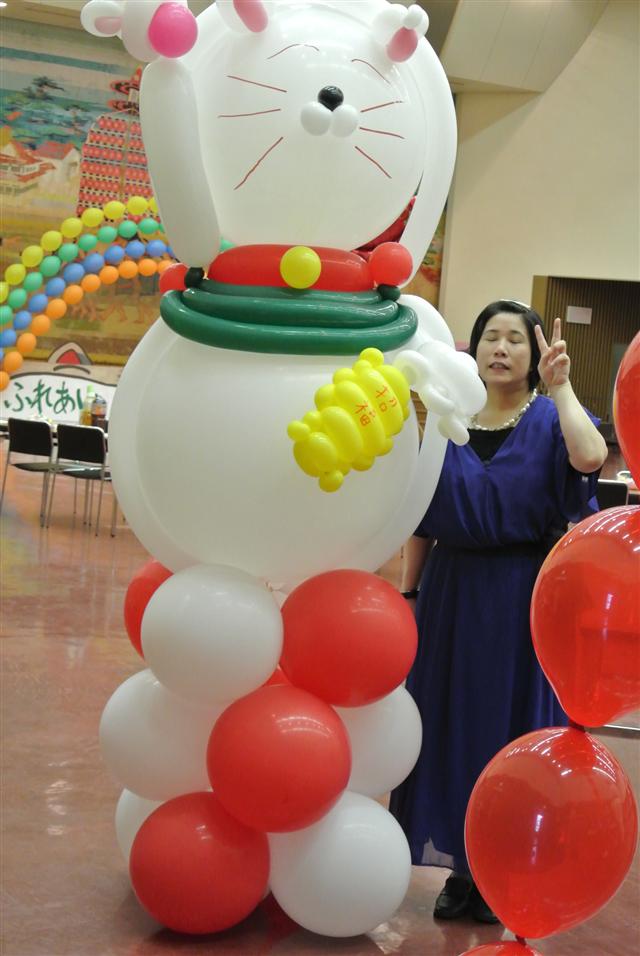 7色で虹のバルーンが出来上がる予定でしたが、途中でヘリウムが足りなくなり