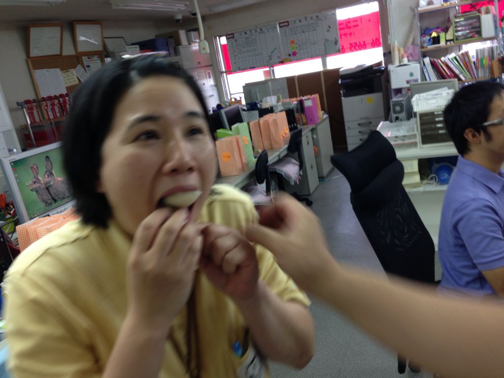 杉かなちゃんの口の中に社長の食べさしのお饅頭が入って行きました(笑)