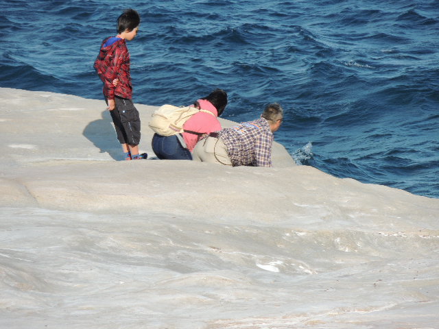 こんな高い岸壁で、真下には波が打ち寄せ、大人はとても立っていられません。