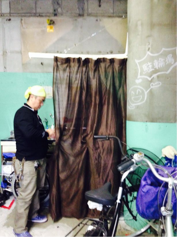 わが社の駐輪場には冷蔵庫を置いています
