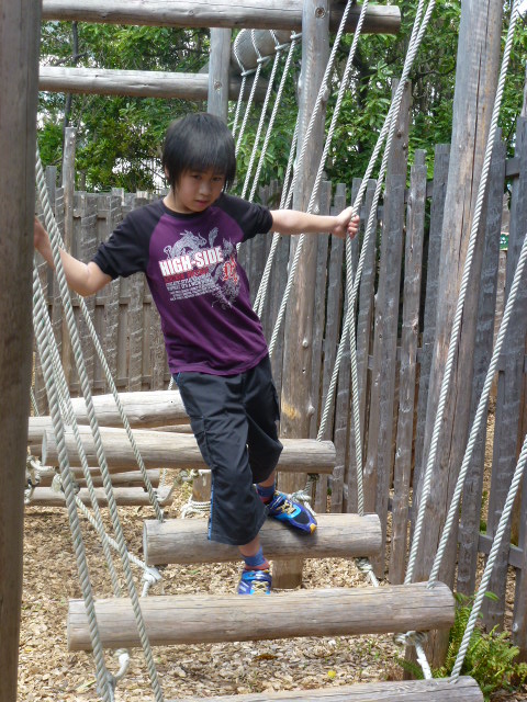 途中はアスレチックになっていて、とても私たちのようにか細い女性には無理♪
