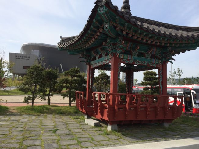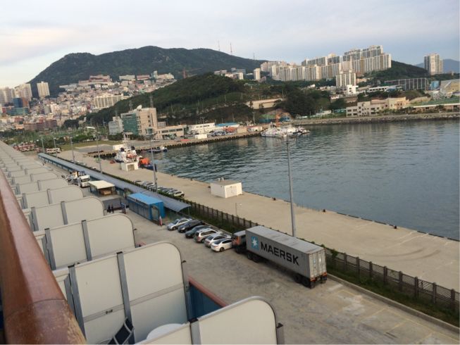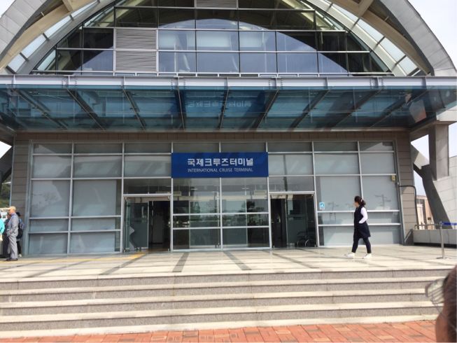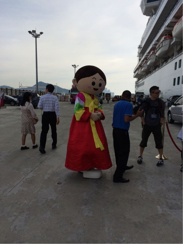 下船時には韓国の衣装の着ぐるみちゃんがお出迎え♪