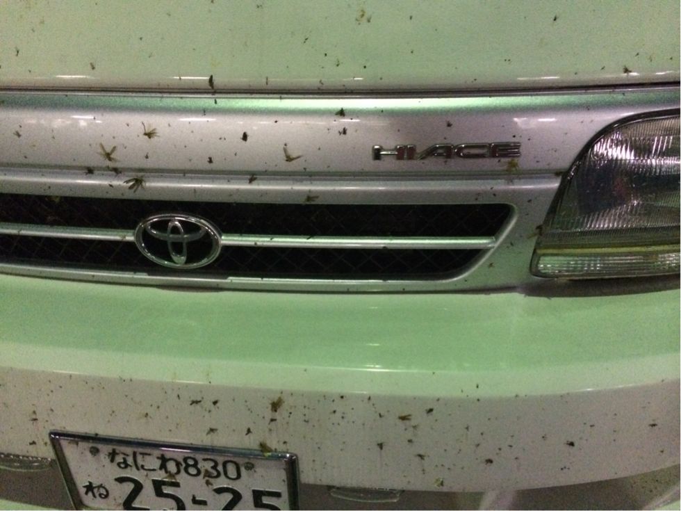 早速、ペットボトル3本持って車の虫を落とします