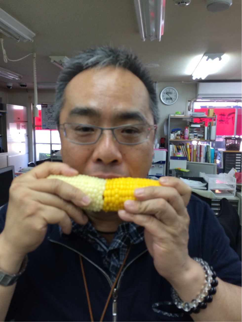 社長は、北海道の車の中で、一緒に食べたトウモロコシを