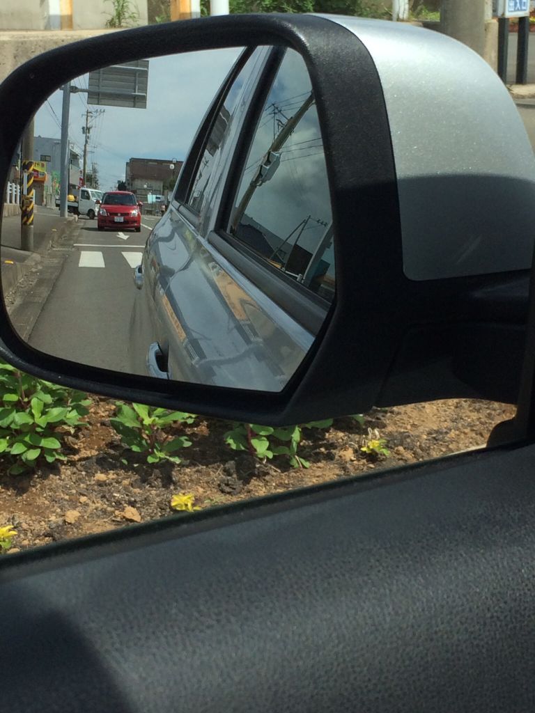 ミラーに映ってる赤い車にはtanega島パパさんとお兄ちゃん
