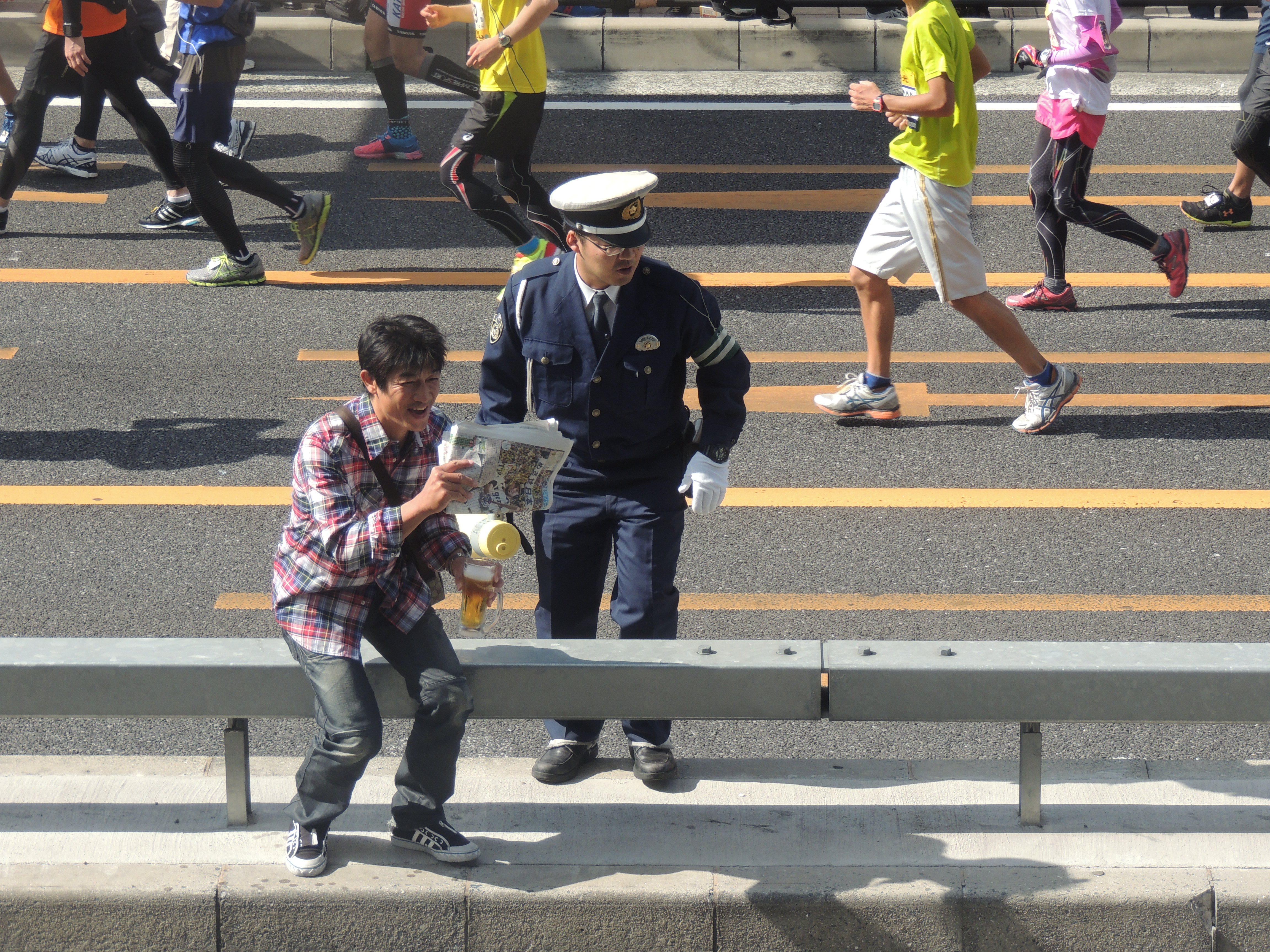 みんな一生懸命に走っているのにこんな所でビール飲んで・・・