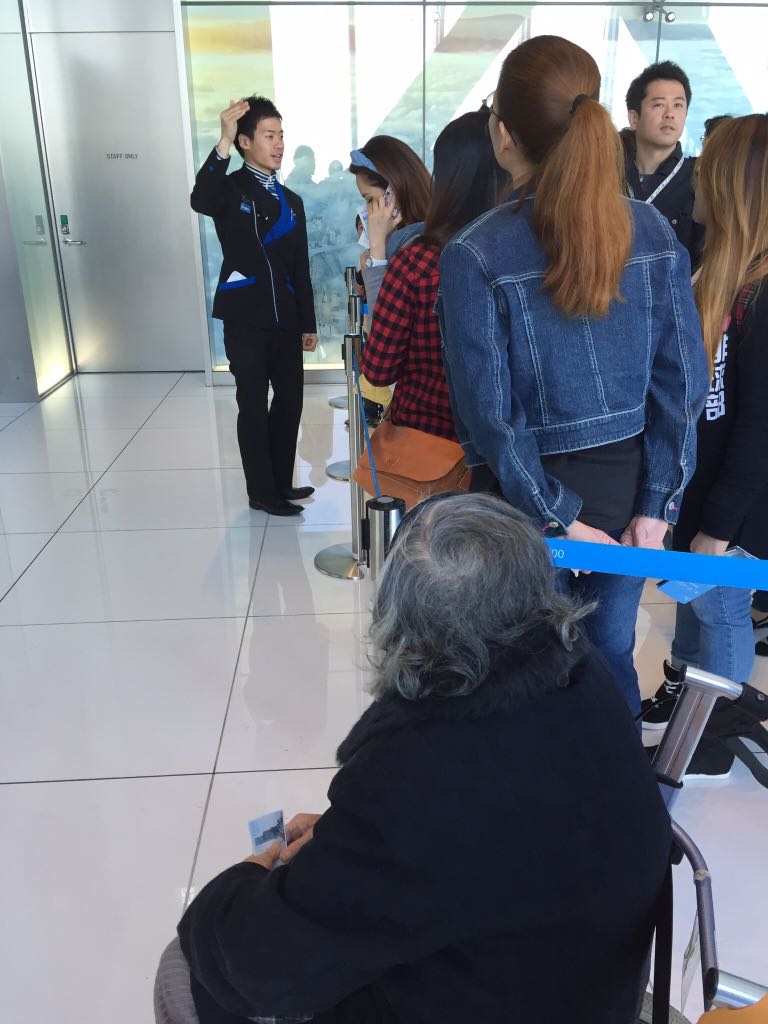 予約していたMさんは列の横を通り抜けて16階までスムーズに進めました。