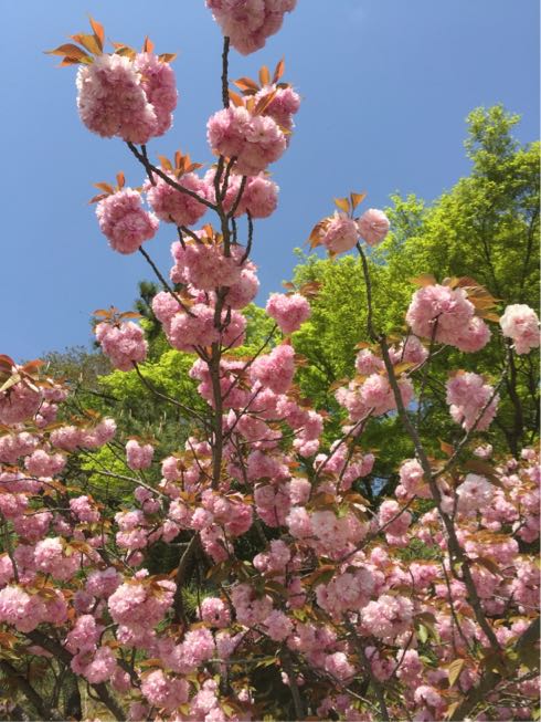 八重桜が青空に映えていました♪