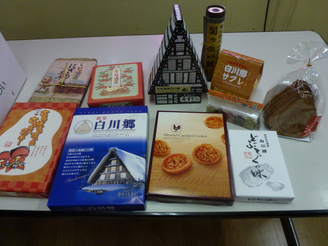 お土産の山!!ですが、合掌造りの箱が気になります☆
