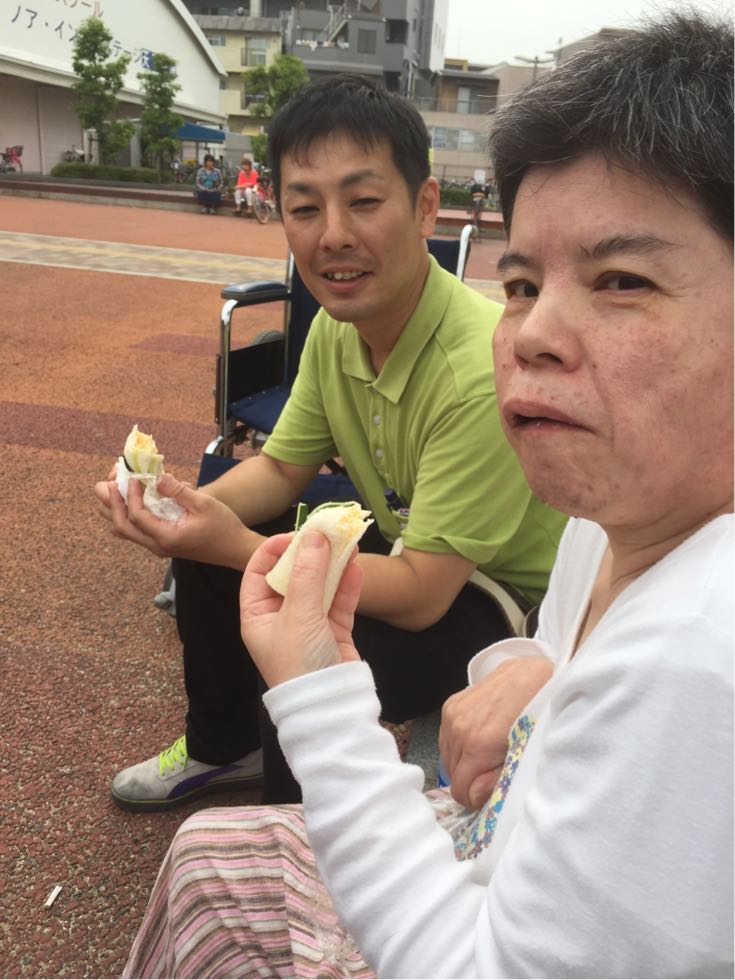 可愛いお花のロールサンドを持ち込み公園で食べてもらいました♪