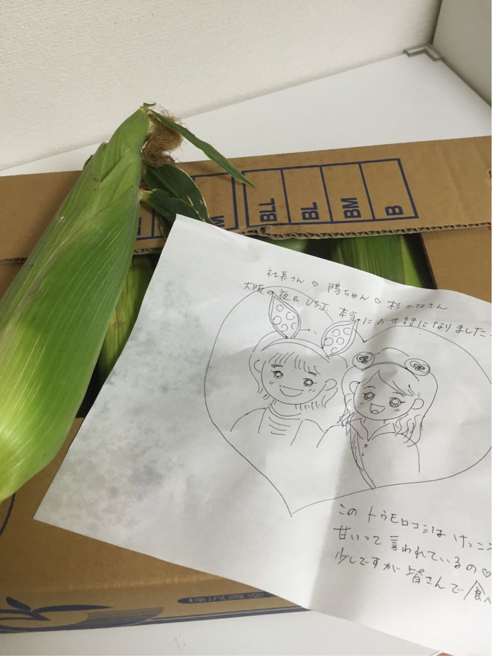 トウモロコシと一緒に可愛いイラストが入っていました♪