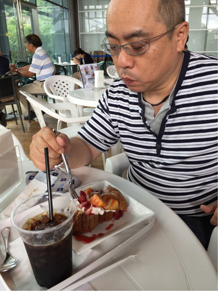 ホールのオープンカフェで休憩です♪