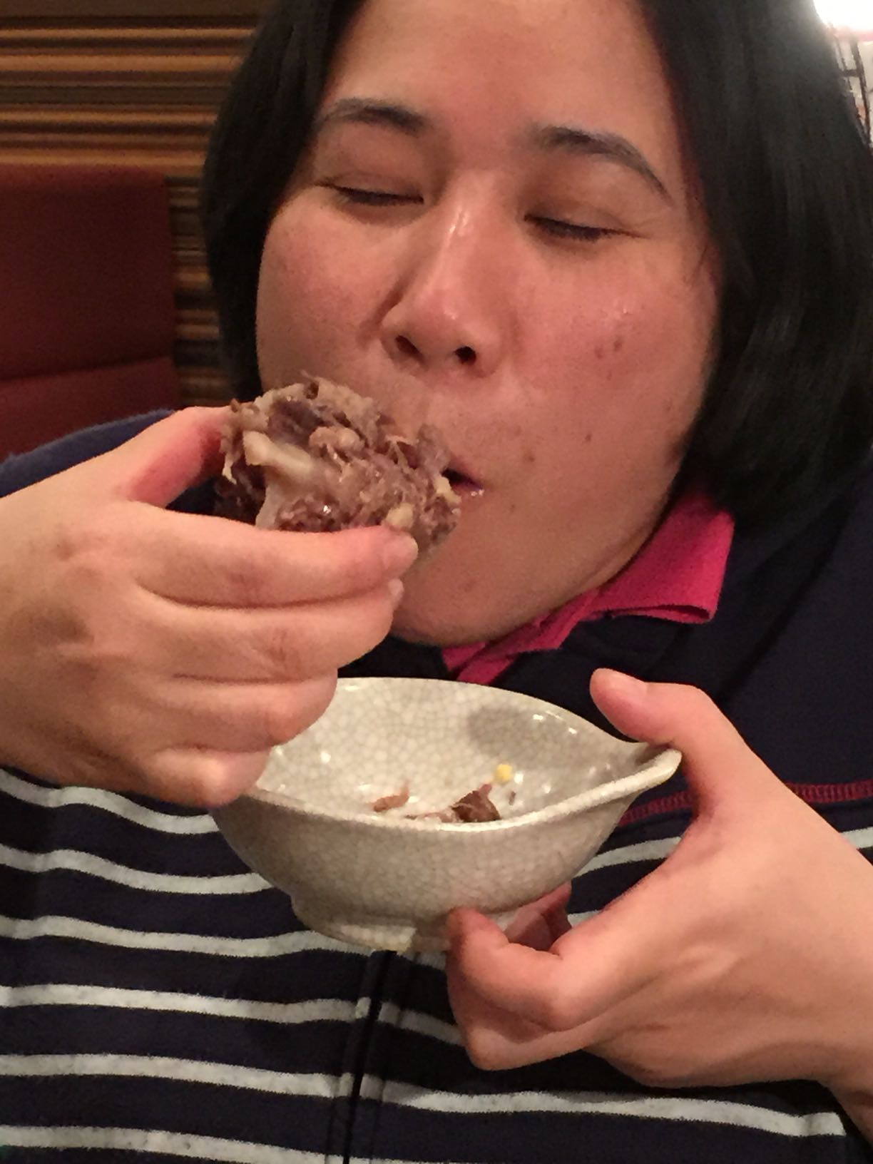 杉かなちゃんは、あつあつのテールスープを注文♪