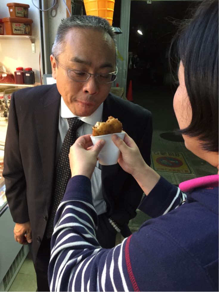 駅へと向かう商店街の道筋では、必ず、ここでポーズをとる社長です(笑)