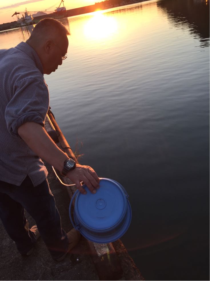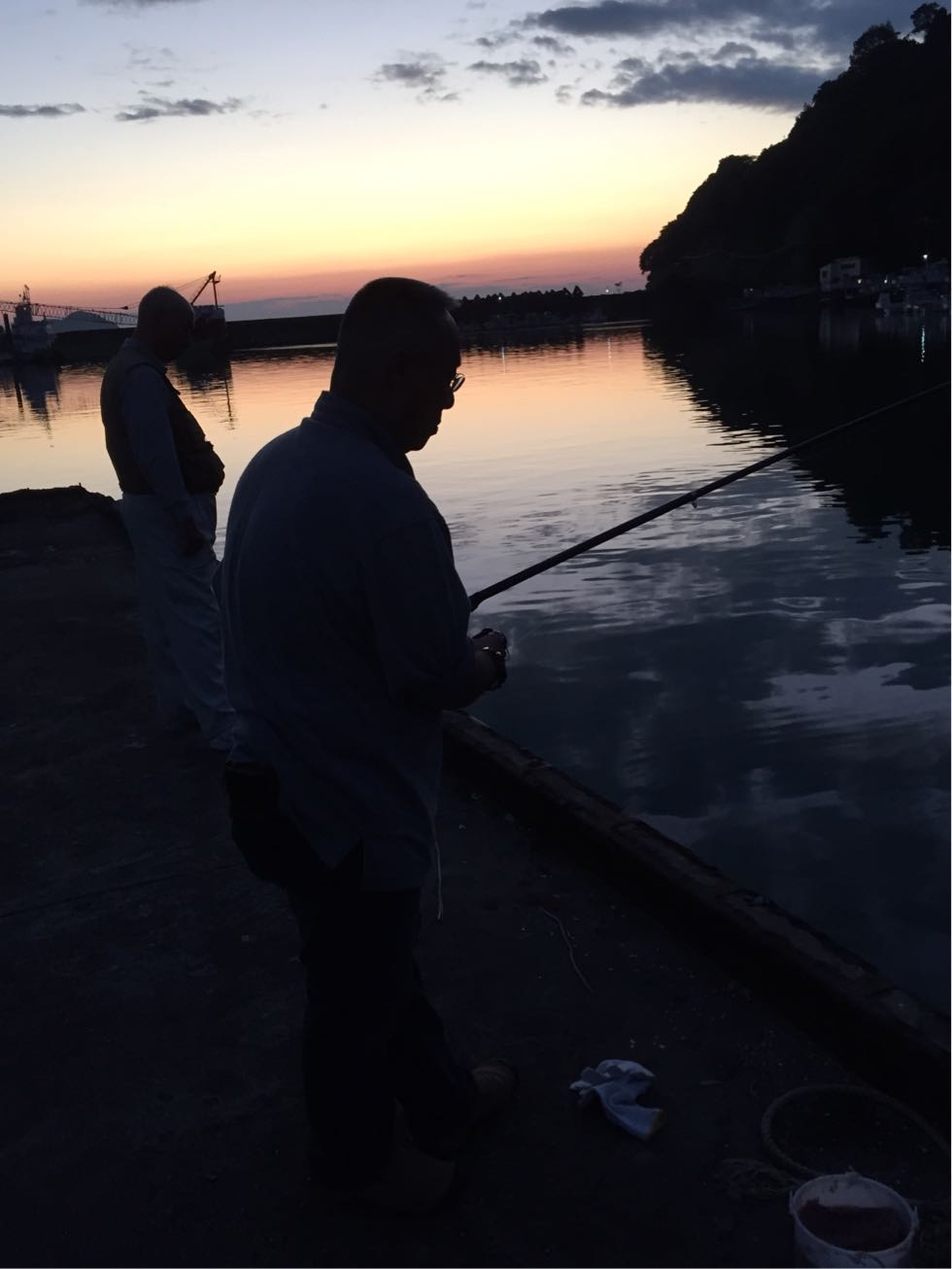 師匠たちは、反対側に波止場で投げ釣りでチヌ狙いでした。