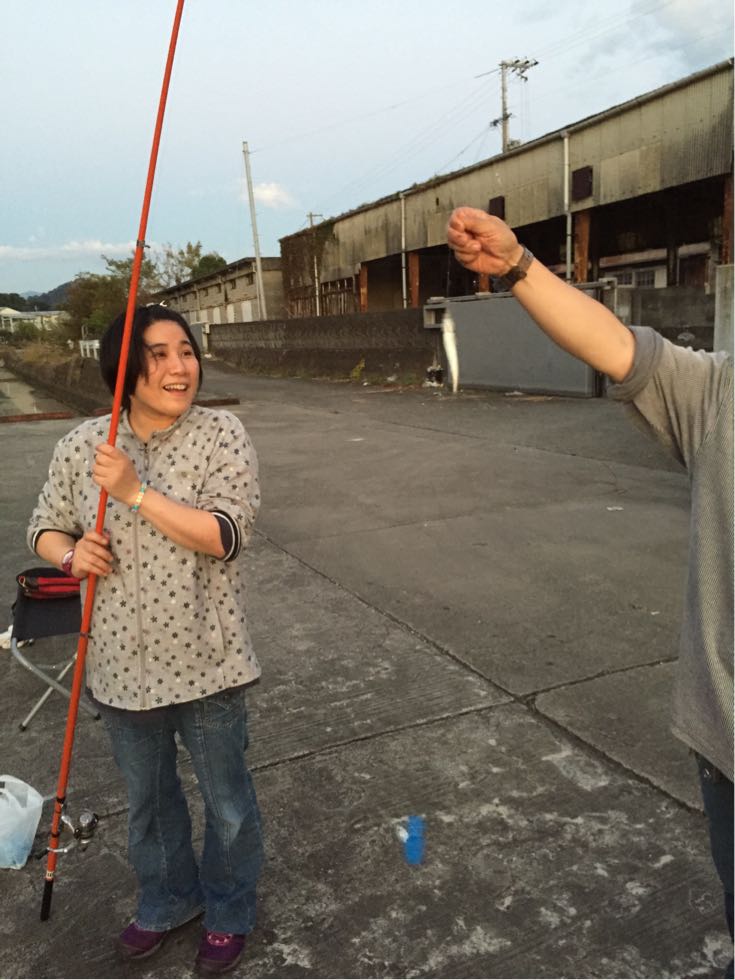 釣り初心者の杉かなちゃんは、竿のブルブル感を楽しんでいました♪