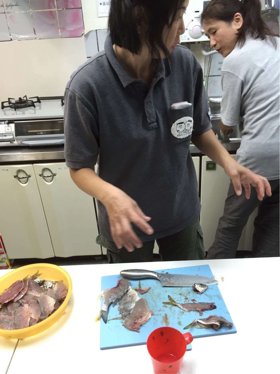 月曜日に、事務所で魚をさばいた事の無いヘルパーさん達が