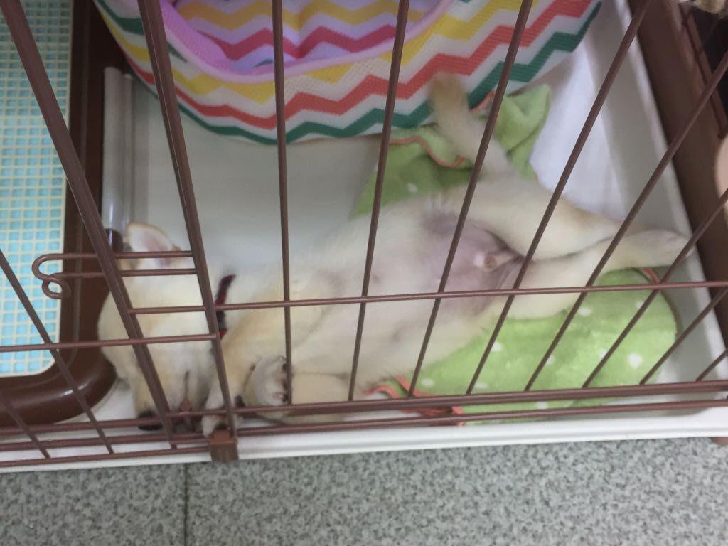 響ちゃんもゲージから足を出しながら 爆睡中♪