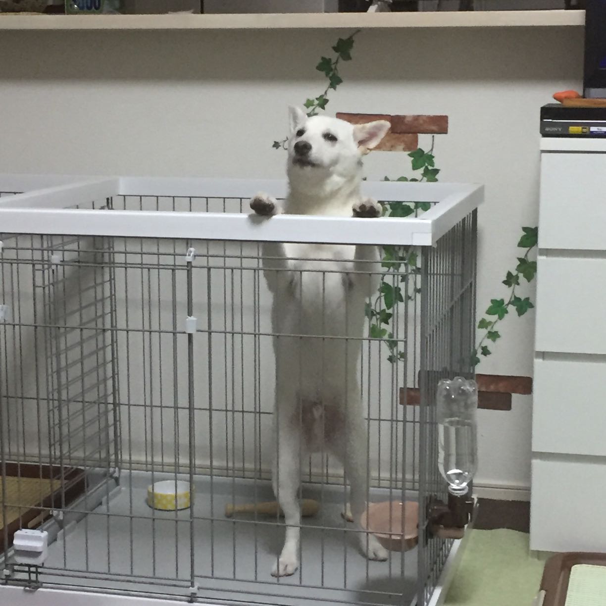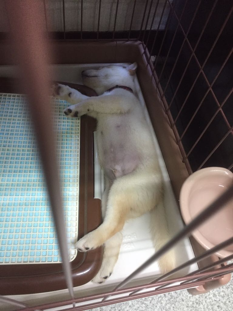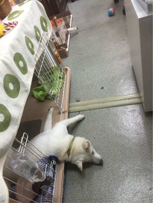 柴ちゃんは、ゲージから頭が落ちていますが爆睡中♪