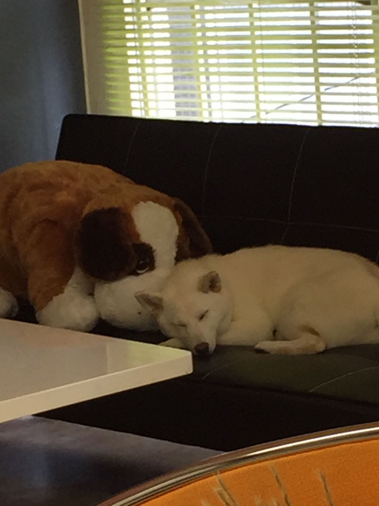 性格の大人しい柴ちゃんは、ソファーの上でスヤスヤと・・・・