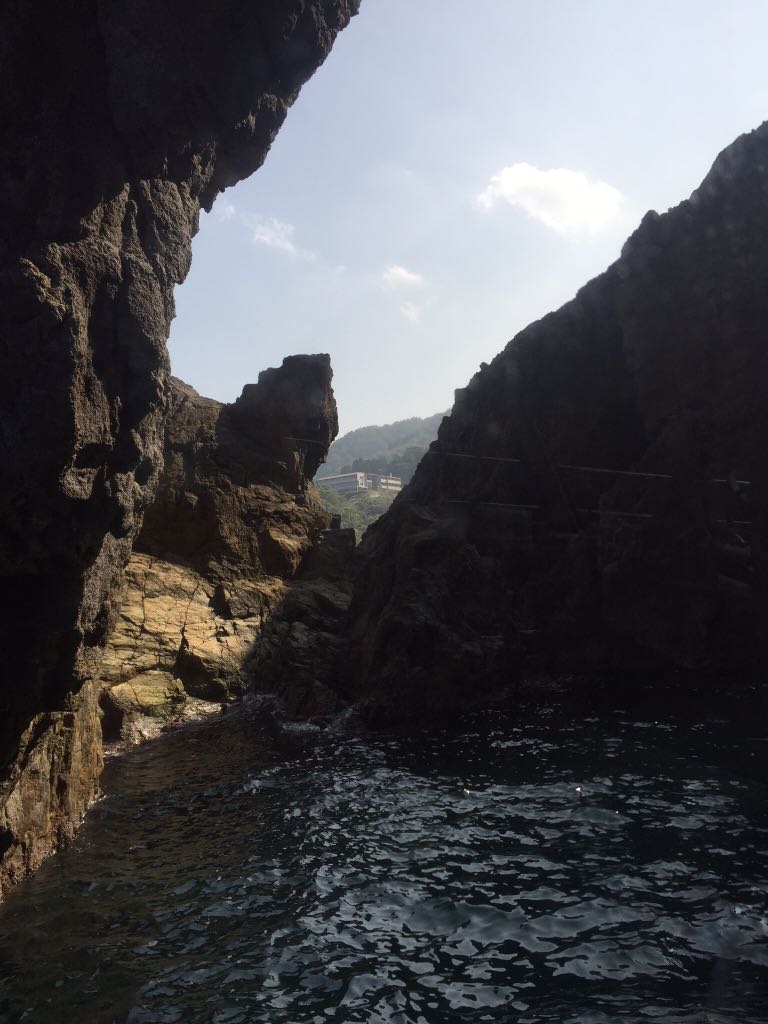 暗い岩の間を抜けて行くと