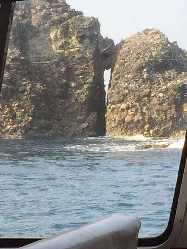 こんな岩がスレスレな場所へも遊覧船は入って行きます。