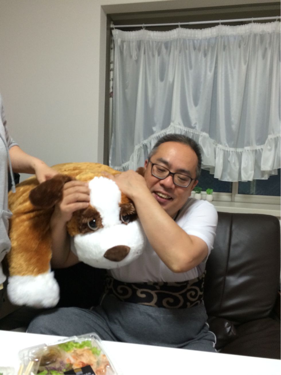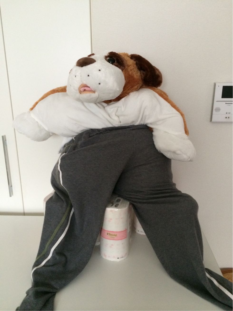 社長のパジャマのズボンをはかせられているジョンの・・・はな