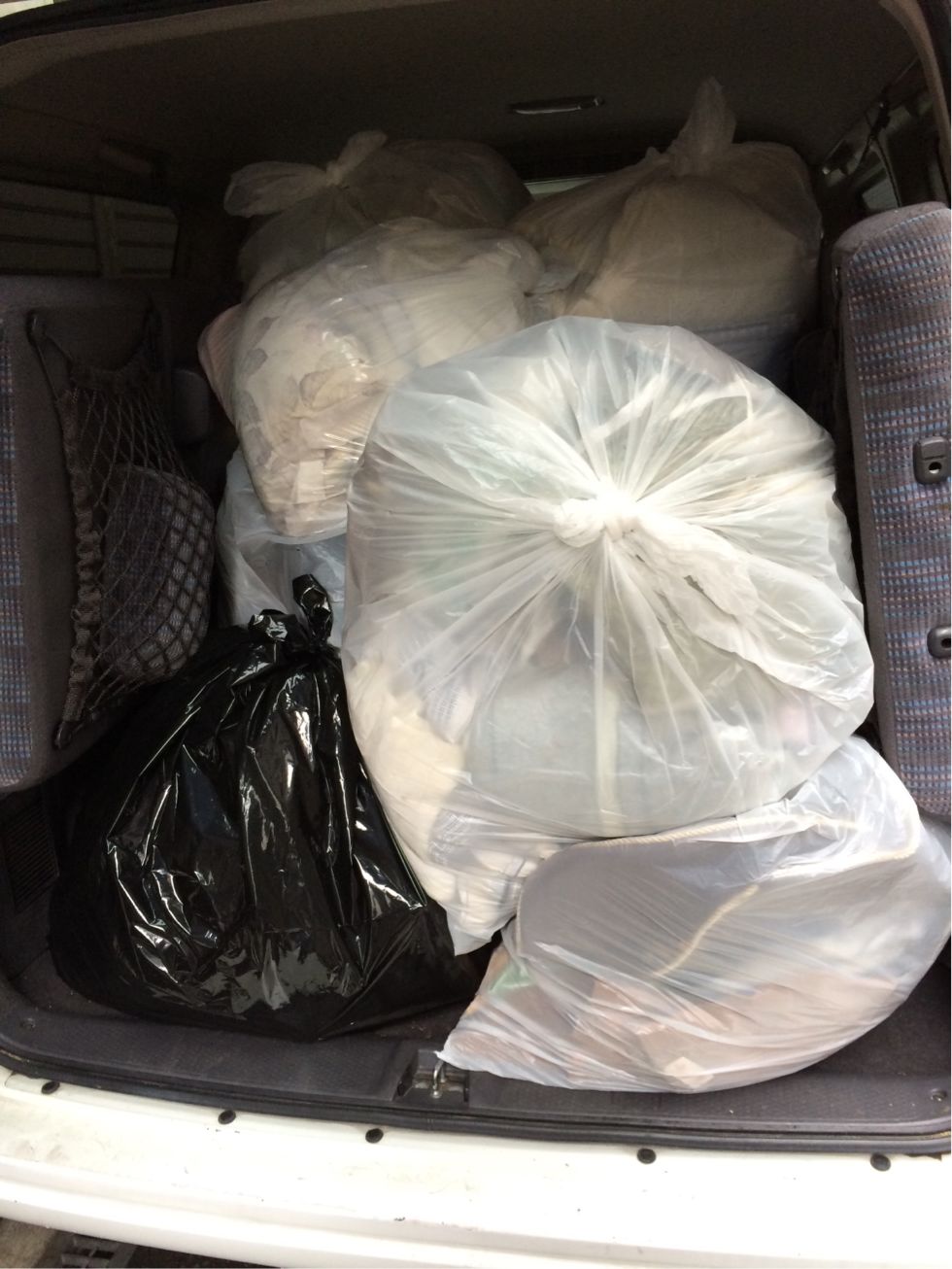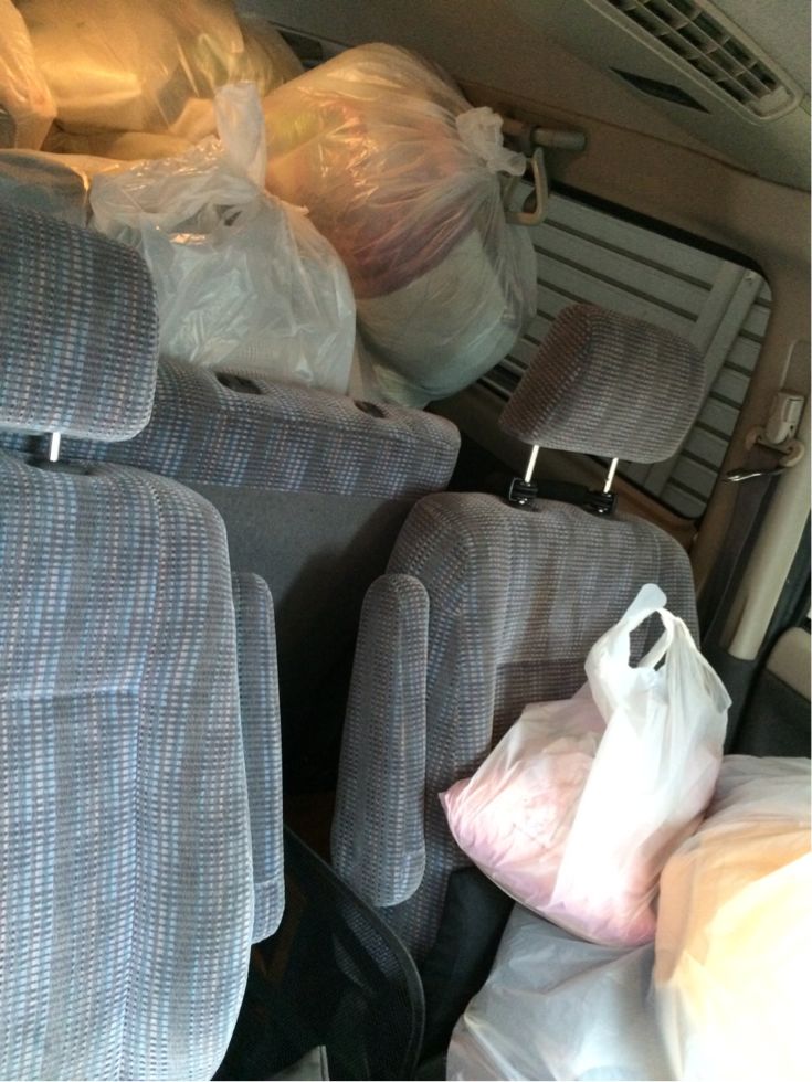 助手席にまでゴミ袋がいっぱい