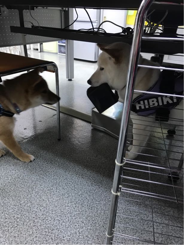 事務所に来る時はどうしても階段があるので父さんに抱っこしてもらってるんだ。