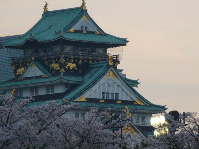 大阪城と桜です。これで、少しショックを忘れよう・・・・・