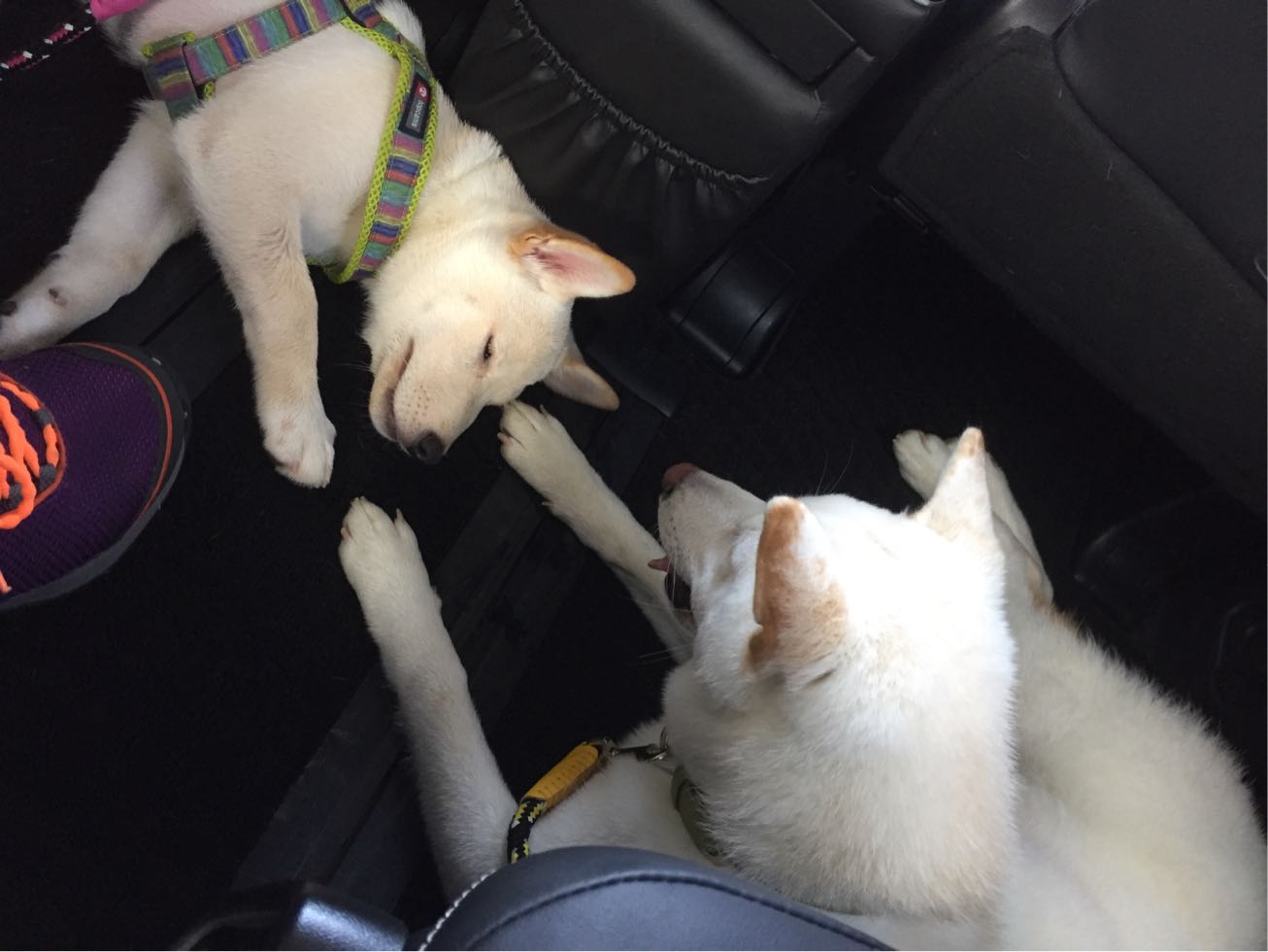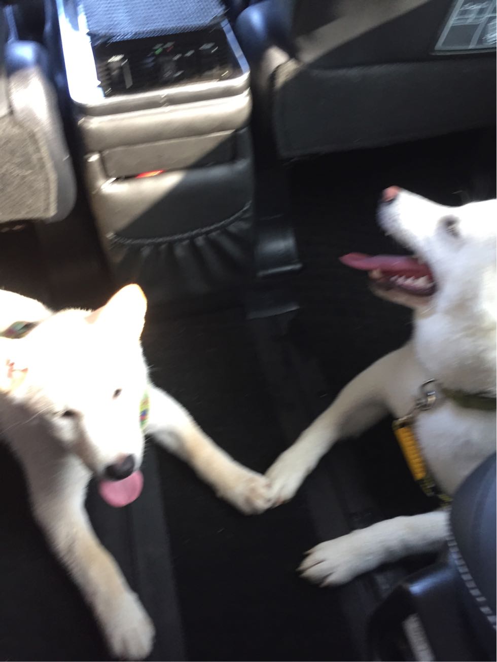 車の中では、仲良く手をつないでいます。(偶然だけどね 笑)