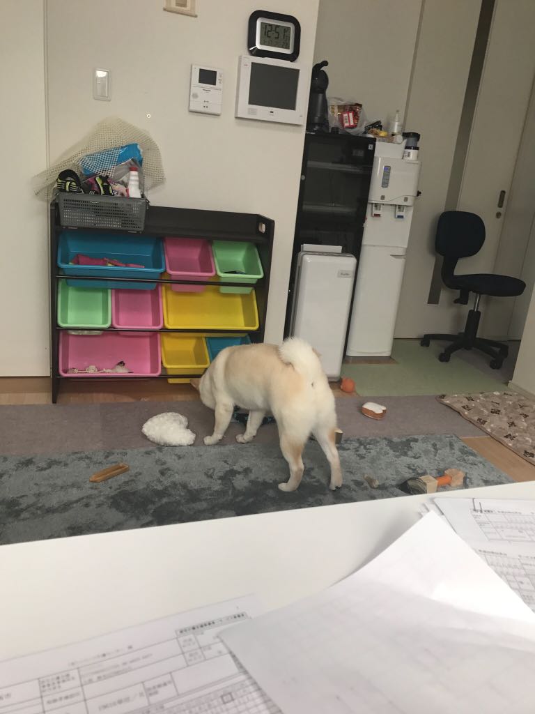 例によって、毎朝 響ちゃんは、事務所荒らしをしています。