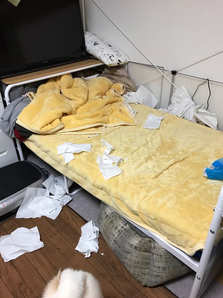 この後片付けようとしても、響はティッシュをくわえて部屋中走り回り