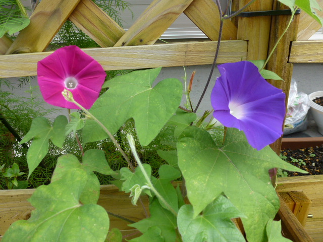 >色違いの2つの朝顔♪可愛く咲きましたね♪