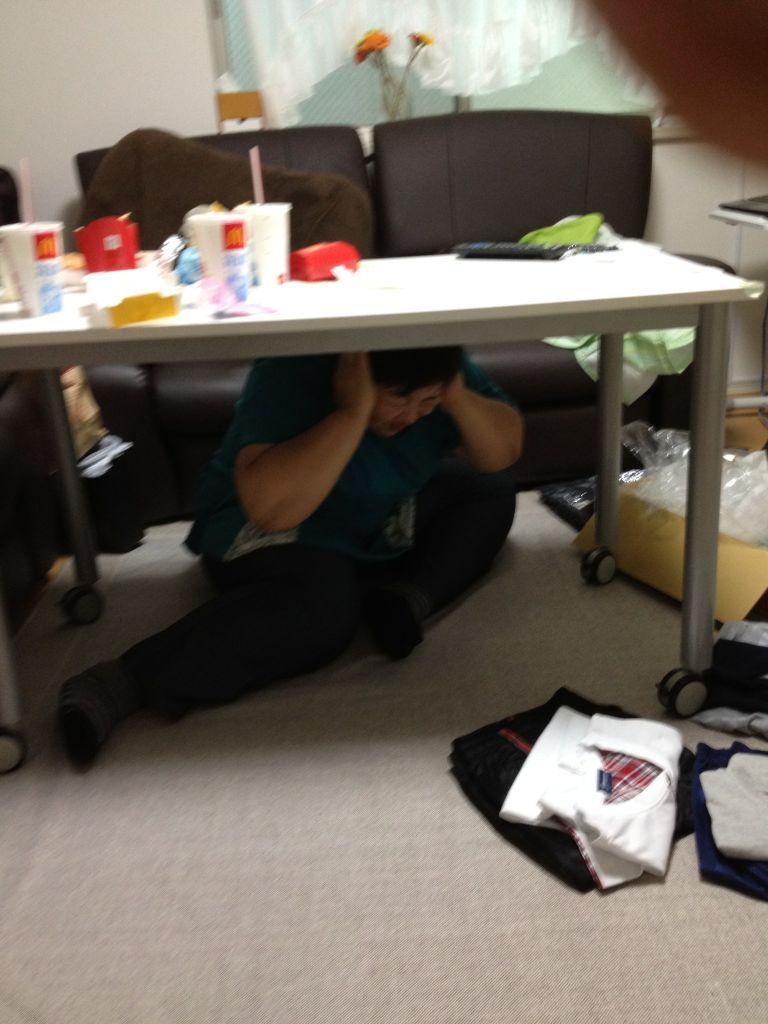 ちなみに机の下に潜るのは地震の時じゃないですか?