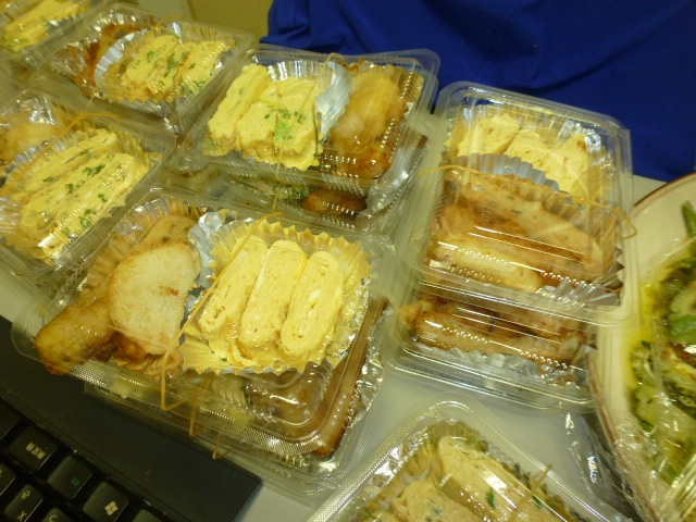 陽ちゃん特製だし巻き卵 ・ はんぺんのてんぷら ・ キャベツとたくあんの漬物♪