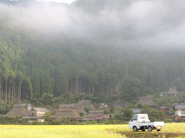 茅葺屋根と軽トラックがなんだかいい雰囲気で~パチリ(笑)