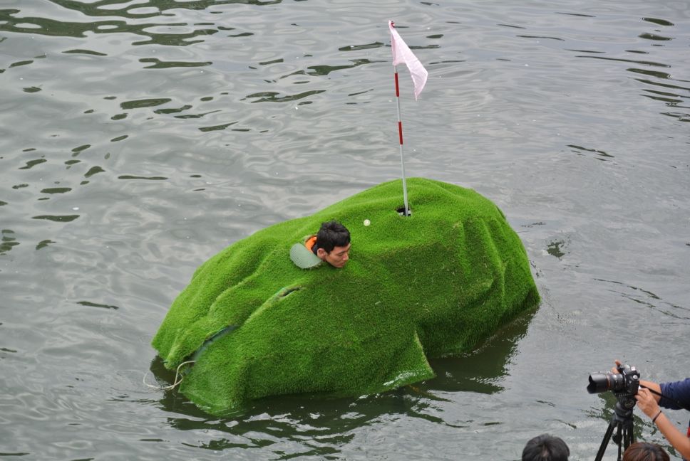 ゴルフのグリーンのようなのですが、ショットは陸から行うようです??