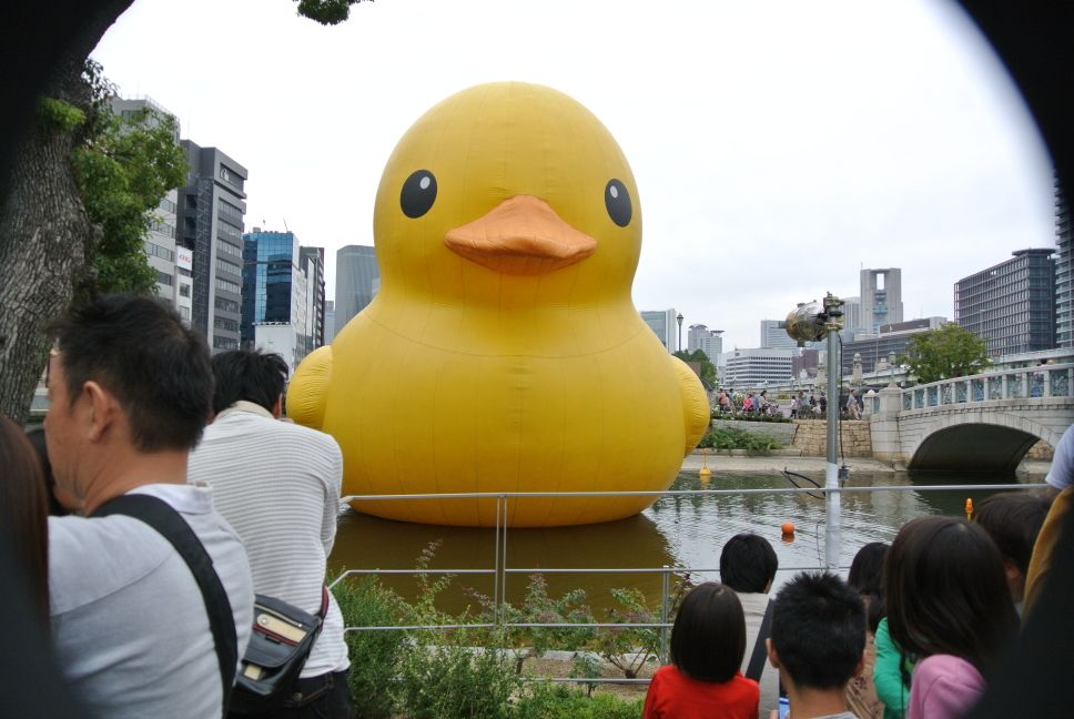 なんとも巨大なアヒルが浮かんでおります♪