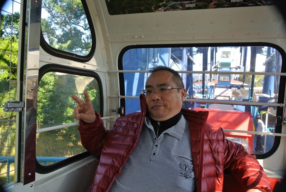 社長は余裕のピースですが陽ちゃんは高所恐怖症(苦笑)