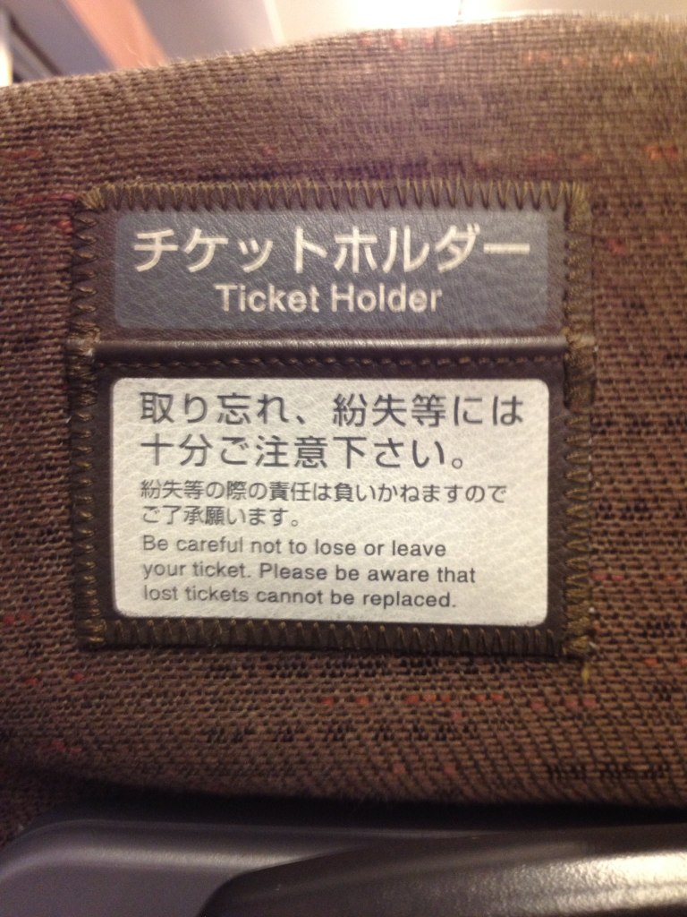 そして、座席の前には切符入れ(チケットホルダー)があるのです。