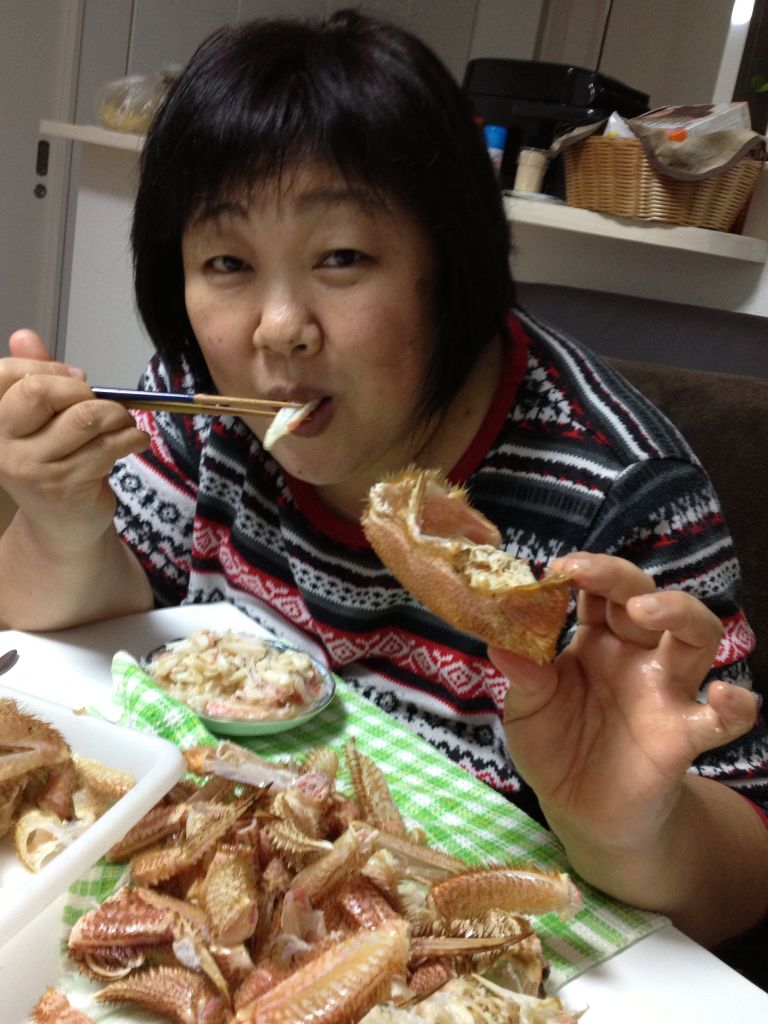 毛ガニをむしゃむしゃ♪