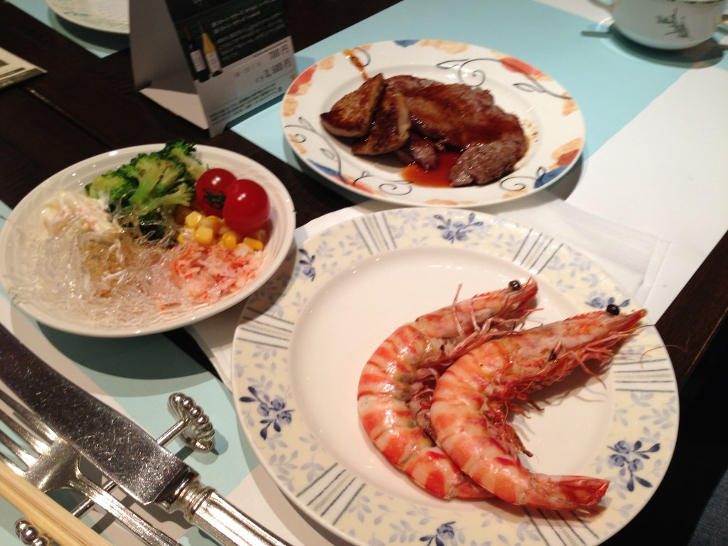伊勢海老の天ぷらに牛フィレ肉のステーキ、フォアグラ、活け車海老の網焼きなどなど・・・・