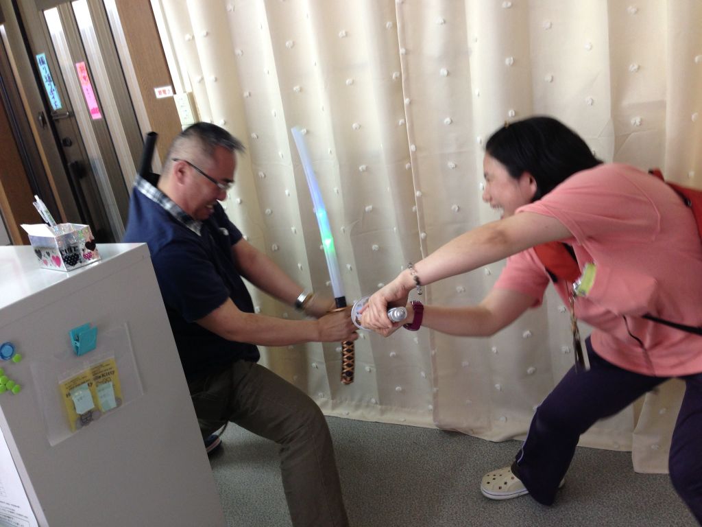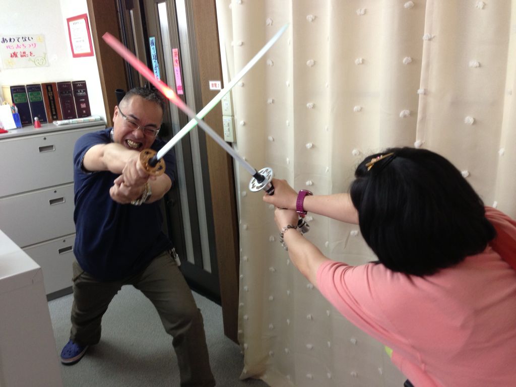 社長はみんなに刀をサヤにしまうコツを伝授してました(苦笑)