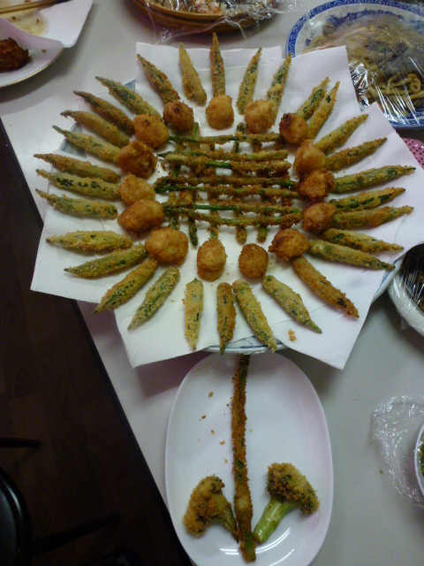 事務所のお昼ご飯も見えない〜!! 全部フライなんですね。想像します。