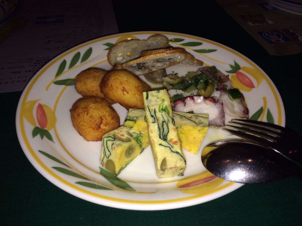前菜三種盛り ジャガイモのフライにたこと卵料理ですね