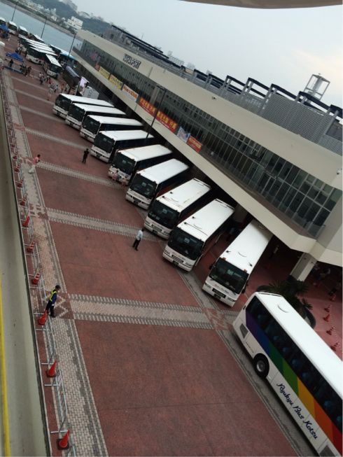 すでにたくさんの観光バスが待機しています